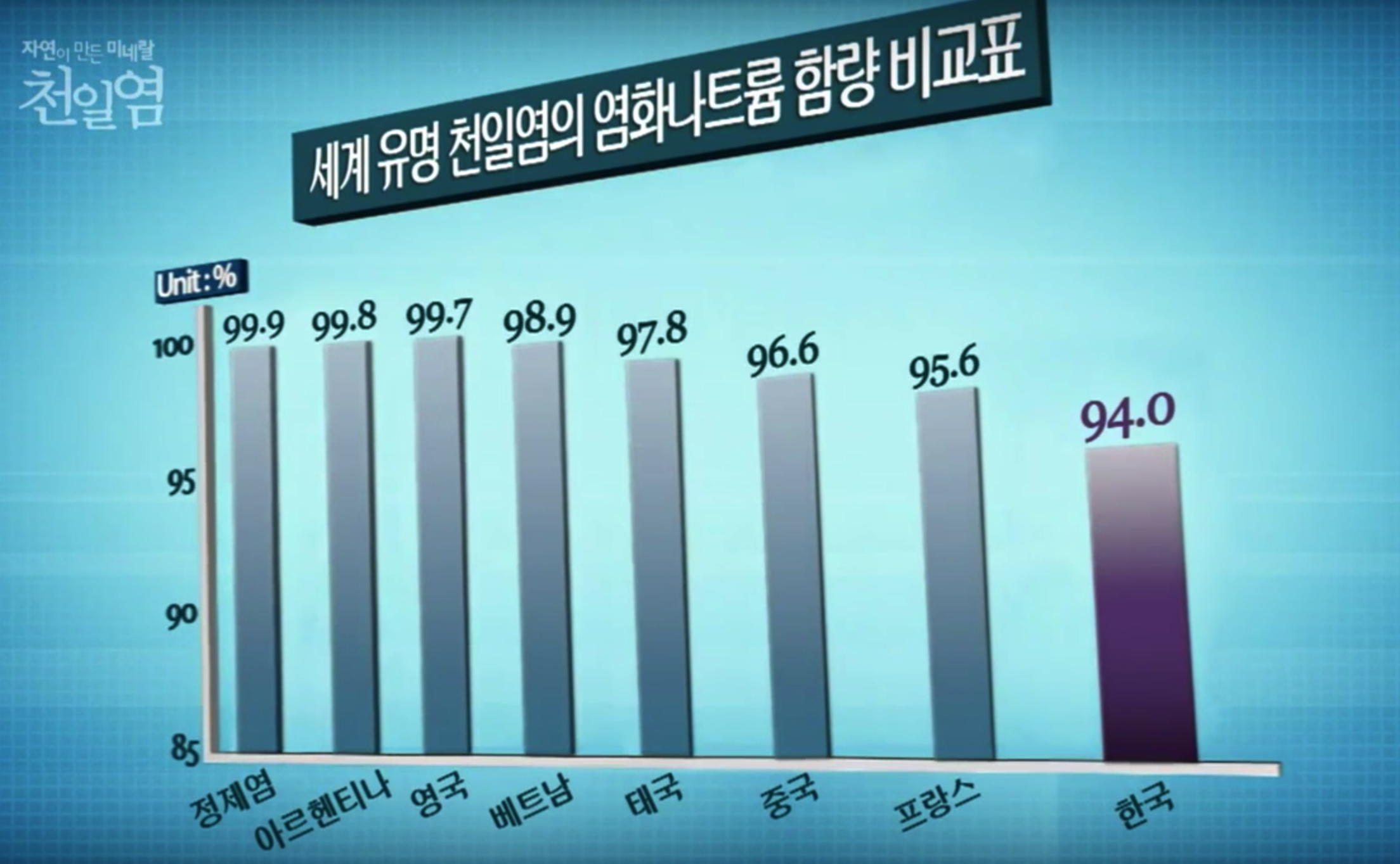 한국 천일염은 미네랄이 풍부한 데다 알카리성을 띠고 있기 때문입니다.