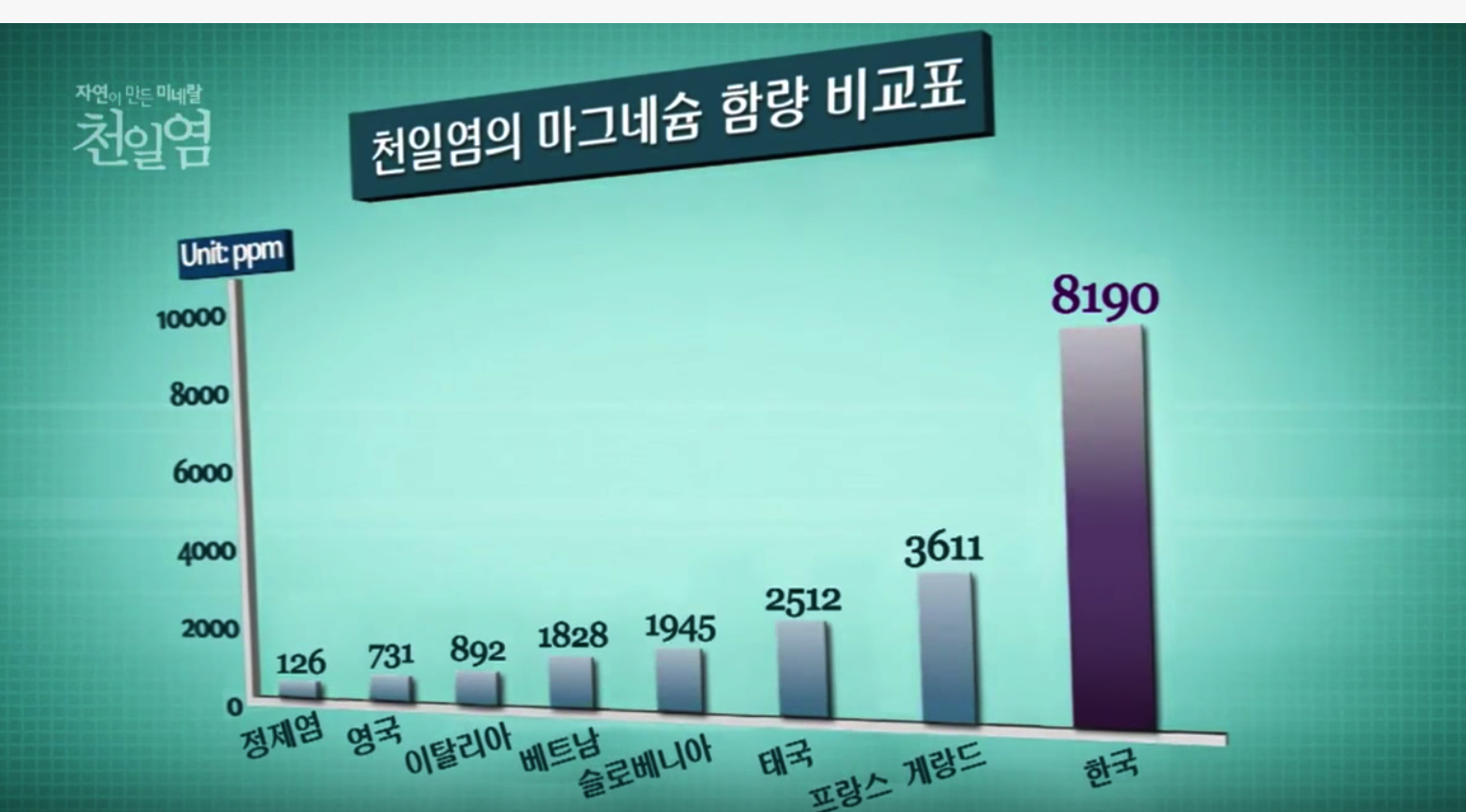 특히 한국의 천일염은 세계 최고의 미네랄 함유율을 자랑합니다.
