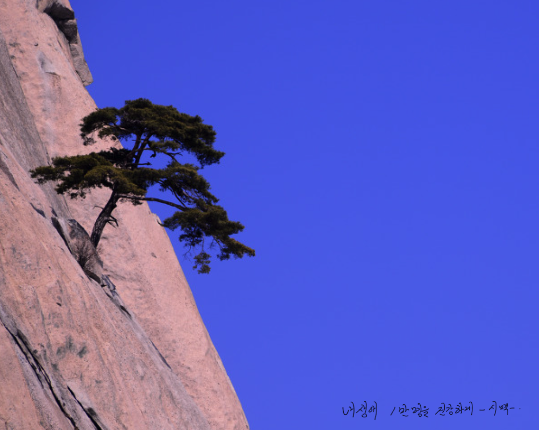 언제나 푸른 소나무처럼 환경을 탓하지 않고 비가 오나 눈이 오나 덥거나 춥거나 항상 푸르름을 잃지 않는 소나무가 30년 전부터 좋았습니다.