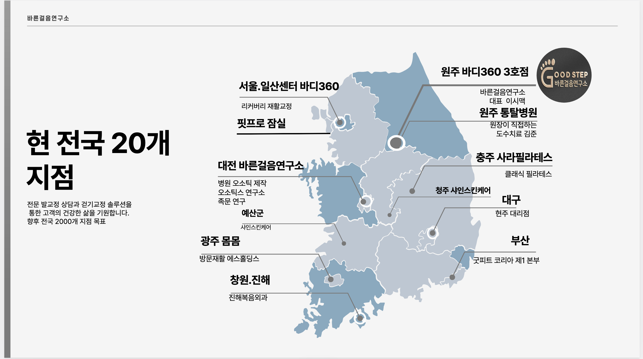 현재 바른걸음연구소와 협력하는 센터는 전국 20개 지점이 있습니다.