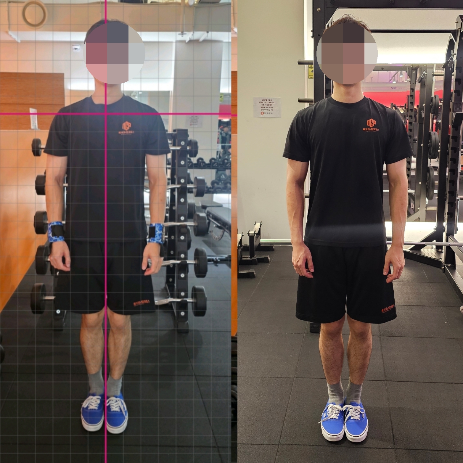 운동과 함께 발의 정렬을 잡는 교정 솔루션을 병행하면 더욱 빠르고 확실한 효과를 볼 수 있습니다. 고객님께서는 운동 후 **오소틱(교정용 깔창)**을 착용하신 뒤, 바른 걸음 훈련을 진행하셨고, 결과적으로 허리가 펴지고 자연스럽게 앞을 보며 걷게 되셨습니다.